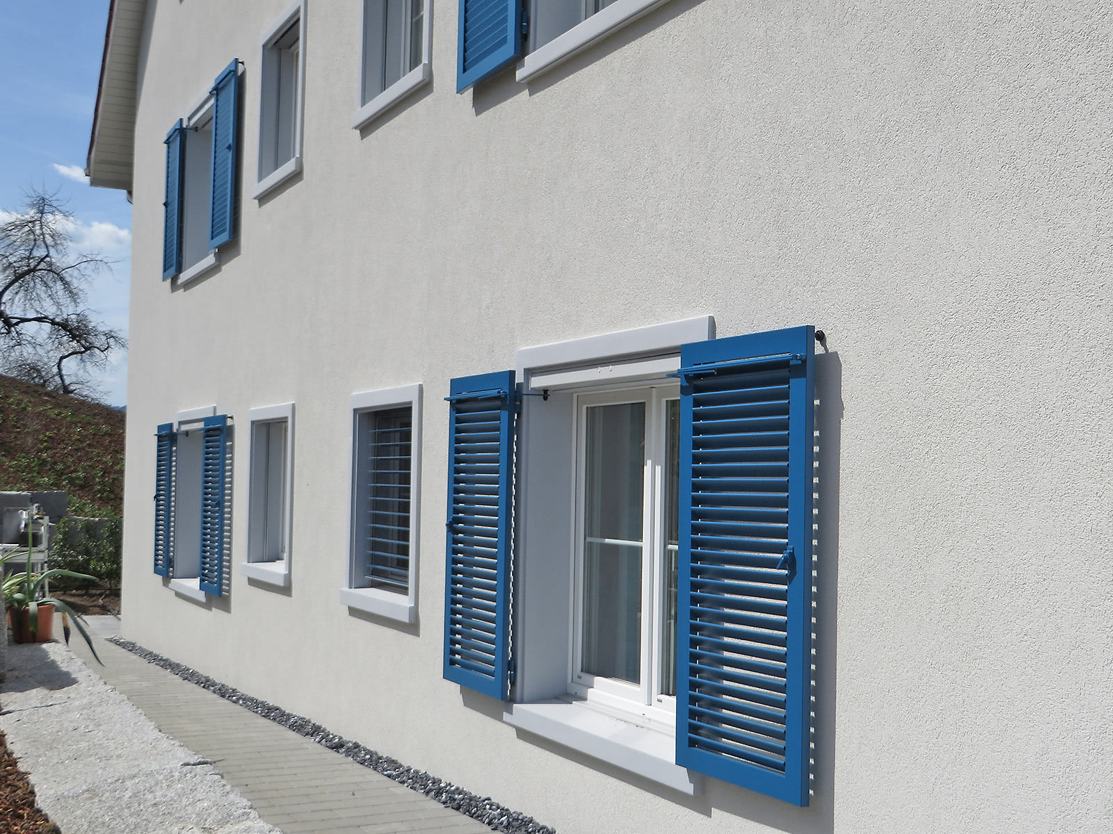 - Aluminium-Klappladen mit festen oder mit beweglichen Lamellen